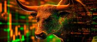 Bestelle dieses abstrakte Wandbild Bullenmotiv mit Finanzgrafiken – Digital von Poster Art Shop als Reproduktion auf Leinwand, Alu-Dibond, als Poster, Fototapete oder Acrylglasbild.