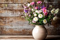 Bestelle dieses Landschafts-Wandbild Bunte Blumen in Keramikvase von Imperial Art House als Reproduktion auf Leinwand, Alu-Dibond, als Poster, Fototapete oder Acrylglasbild.