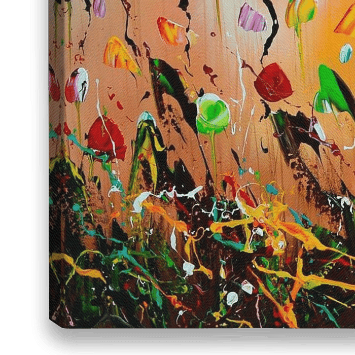 Bestelle dieses abstrakte Wandbild Bunte Blumen von Gena Theheartofart als Reproduktion auf Leinwand, Alu-Dibond, als Poster, Fototapete oder Acrylglasbild.