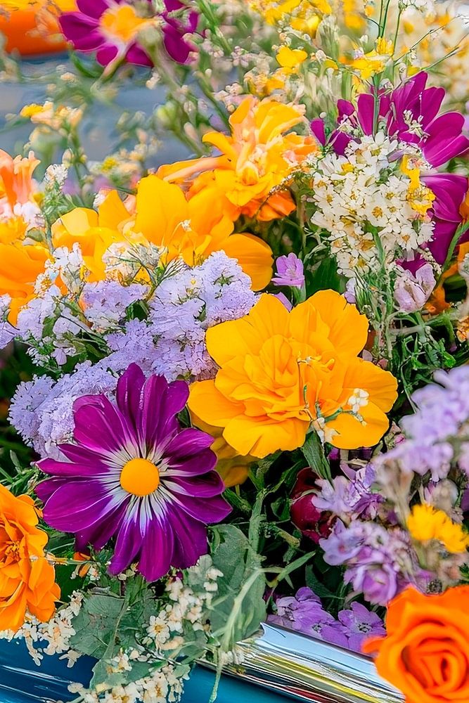 Ein farbenfrohes Blütenmeer entfaltet sich in sanften Pastelltönen und leuchtenden Akzenten, das fröhliche Lebensfreude ausstrahlt. Die harmonische Kombination aus zarten Violetttönen und lebendigen Orangen lädt zum Träumen ein und verleiht jedem Raum ein Essenz von Frische. Ideal für das Wohnzimmer, um eine warme, einladende Atmosphäre zu schaffen.