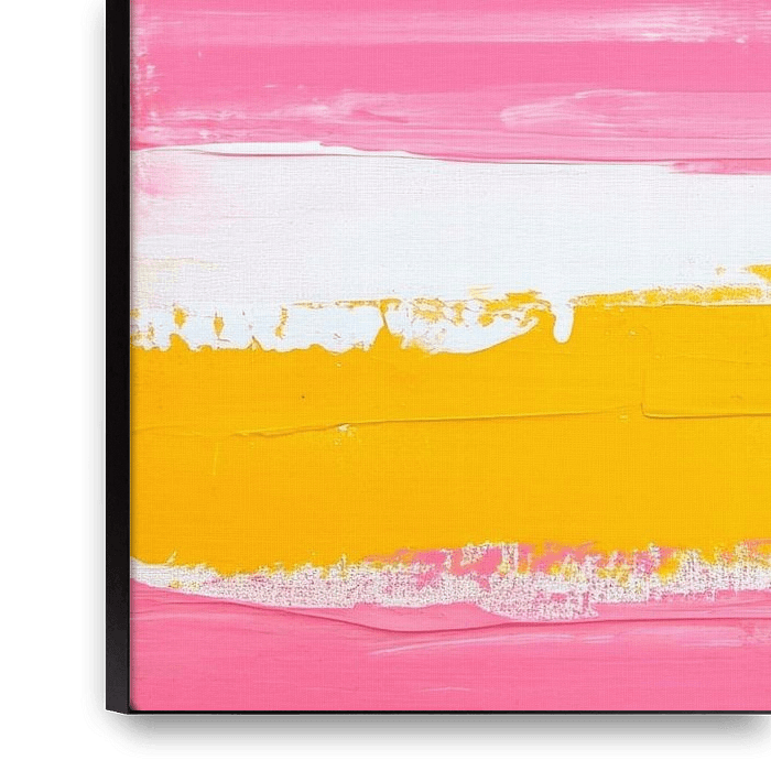 Lebendige, breiten Pinselstriche in strahlendem Pink, erfrischendem Türkis und sonnigem Gelb entfalten eine fröhliche Energie. Diese harmonische Farbkomposition verleiht jedem Raum eine lebendige Ausstrahlung und lädt zum Träumen ein. Ideal für das Wohnzimmer, um Gäste zu begeistern, oder in der Küche, um den Alltag aufzuhellen.