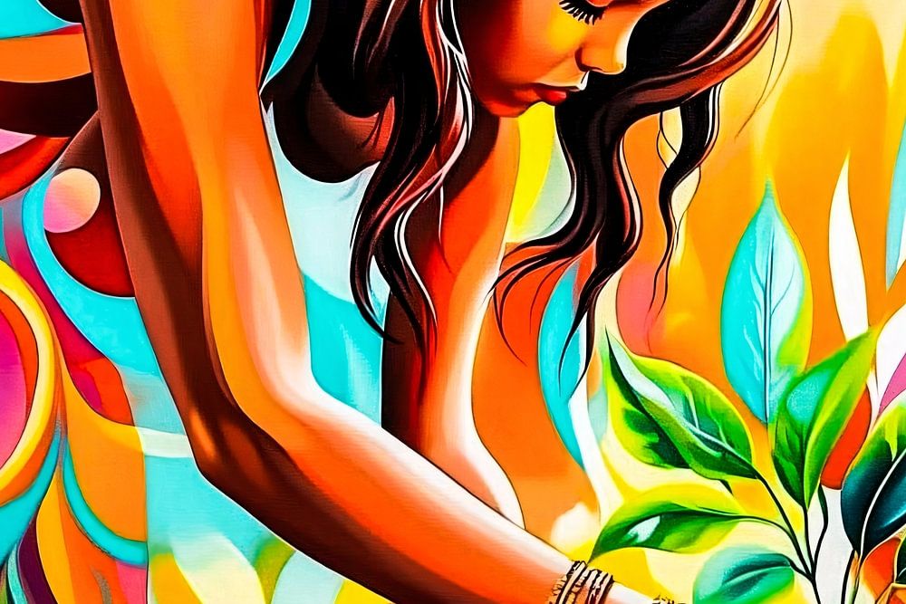 Dieses schöne und farbenfrohe Kunstwerk strahlt Energie und Vitalität aus. Es zeigt eine Frau, die eine junge Pflanze in die Erde steckt, als Symbol für Wachstum, Hoffnung und Verbundenheit mit der Natur. Die leuchtenden Farben und fließenden Linien machen dieses Gemälde zu einem echten Blickfang in jedem Interieur. Perfekt für Liebhaber von moderner Kunst und dynamischem Design. Ideal für ein Wohnzimmer oder ein Büro, um eine inspirierende und positive Atmosphäre zu schaffen.