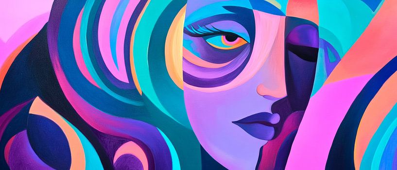 Bestelle dieses Porträt Bunte Frauenporträts mit abstrakten Formen von Poster Art Shop als Reproduktion auf Leinwand, Alu-Dibond, als Poster, Fototapete oder Acrylglasbild.