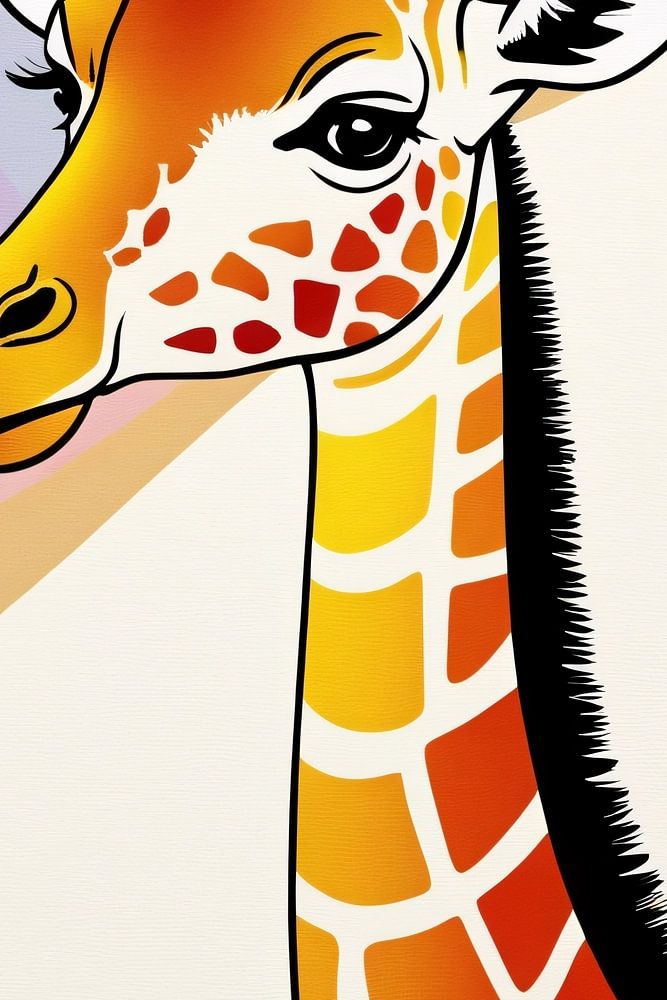 Dieses farbenfrohe Kunstwerk stellt eine elegante Giraffe in einem modernen, digitalen Stil dar. Die raffinierten Linien und die auffallende Farbwahl verleihen dem Bild einen fröhlichen und modernen Look. Die warmen Orange-, Rot- und Gelbtöne gehen wunderbar ineinander über und erwecken das Tier zum Leben. Der Hintergrund mit seinen subtilen Regenbogenfarben bildet einen spielerischen Kontrast zum schlichten Design der Giraffe. Dieses Kunstwerk ist perfekt für Tierliebhaber und Liebhaber moderner Kunst und verleiht jedem Raum eine lebendige, positive Atmosphäre. Ideal für ein Büro oder ein Schlafzimmer, ist dieses Gemälde ein charmanter Blickfang, der sowohl stilvoll als auch inspirierend ist.