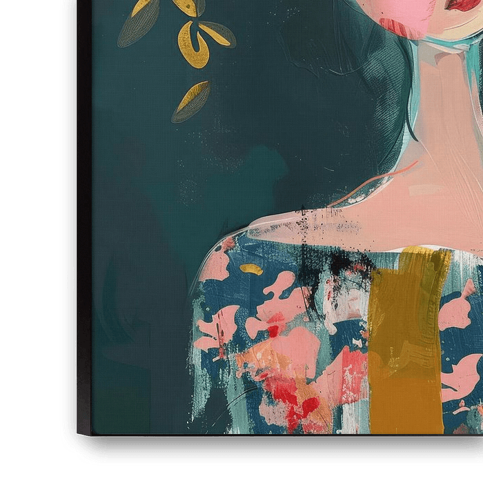 Bunte Illustration, Porträt in grün und rosa. Wählen Sie Ihre eigene Größe und Material für diese trendige Illustration und machen Sie es zu einem echten Blickfang für Ihr Interieur.