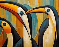 Details: Pinguine, abstrakt, bunt, Tier, Kunst, modern, geometrisch, Natur, orange, schwarz