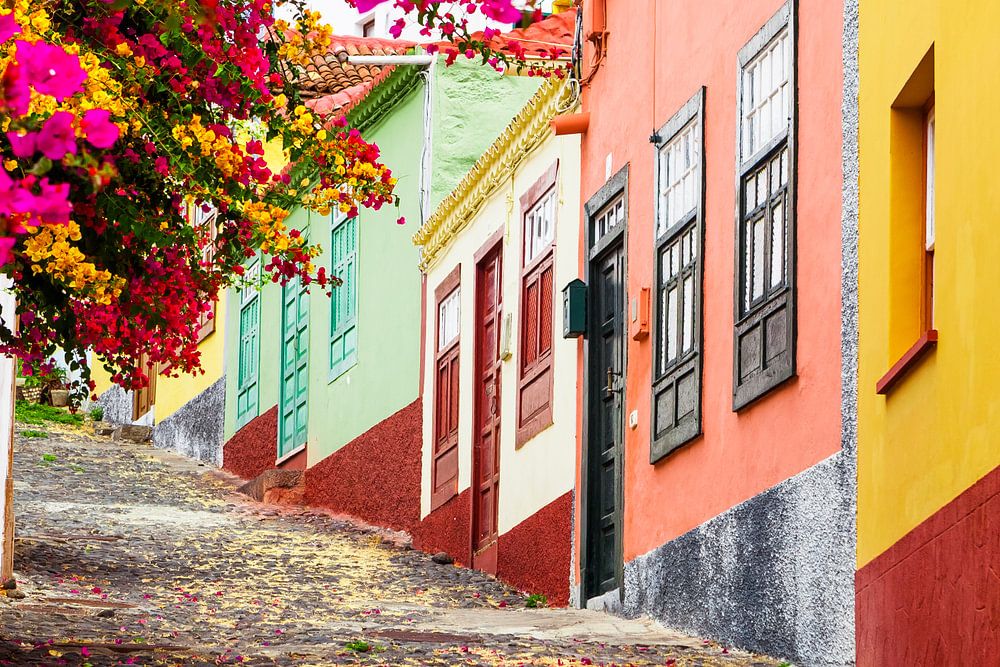 Bunte Straße in Santa Cruz, La Palma, Kanarische Inseln
