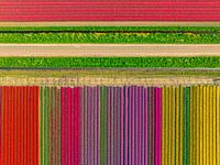 Feld mit verschiedenfarbigen Tulpen im Frühling in Flevoland, Niederlande. Der Noordoostpolder ist ein Polder in der ehemaligen Zuiderzee, der ursprünglich angelegt wurde, um mehr Land für die Landwirtschaft zu gewinnen.