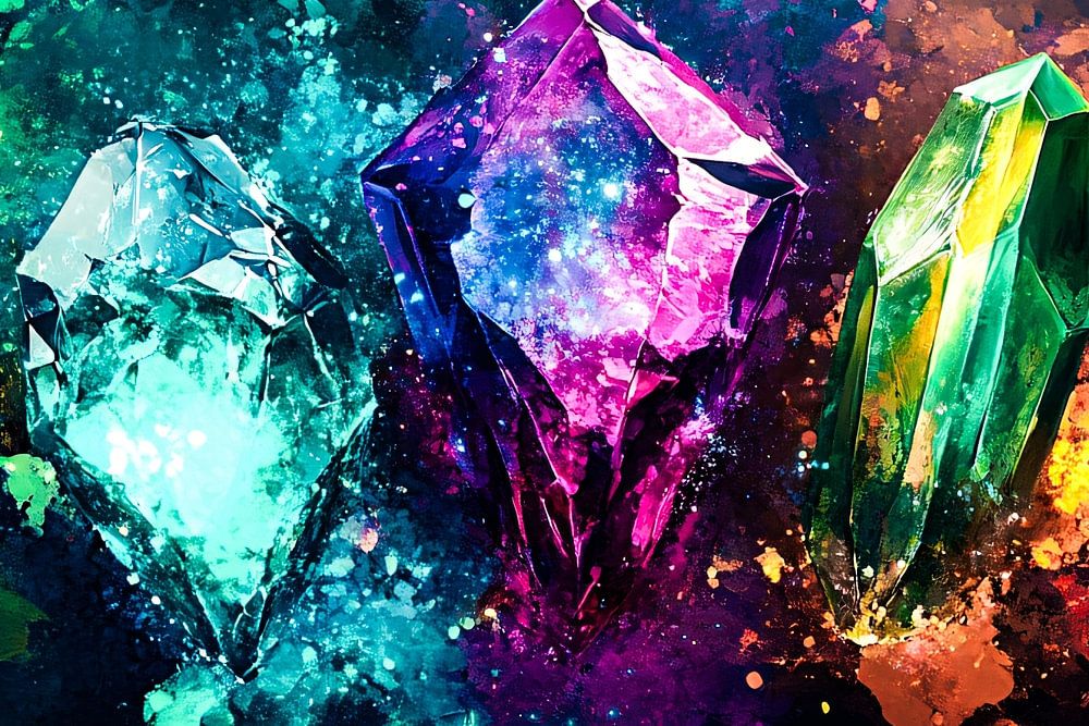 Dieses farbenfrohe Display aus abstrakten Edelsteinen bringt einen Hauch von Magie und Kreativität in Ihre Innenräume. Perfekt für alle, die einen verspielten und einzigartigen Stil lieben. Mit seinen leuchtenden Farben und funkelnden Details zieht dieses Design sofort die Aufmerksamkeit auf sich und setzt einen dynamischen und künstlerischen Akzent. Ideal für moderne Wohnräume oder kreative Arbeitsplätze.
