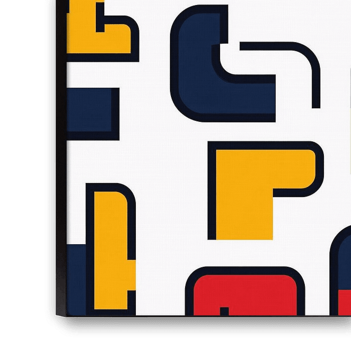Dieses moderne und farbenfrohe Design kombiniert geometrische Formen mit einem dynamischen Einsatz von Farben: Gelb, Rot, Blau und Schwarz kontrastieren vor einem weißen Hintergrund. Die klaren Linien und die erkennbaren pythonartigen Figuren machen es zu einem perfekten visuellen Statement für jeden Raum, insbesondere für ein Büro oder ein Wohnzimmer. Dieses Design ist ideal für Liebhaber von digitaler Kunst und minimalistischen Mustern und bringt eine energiegeladene Stimmung in Ihr Interieur. Dieser Kunstdruck ist eine stilvolle Ergänzung sowohl für Wohnräume als auch für kreative Arbeitsbereiche.