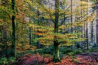 Ein niederländischer Wald im Herbst. Herbstliche Farben in Hülle und Fülle. Und im Vordergrund eine Buche, die eine schöne Farbe hat.