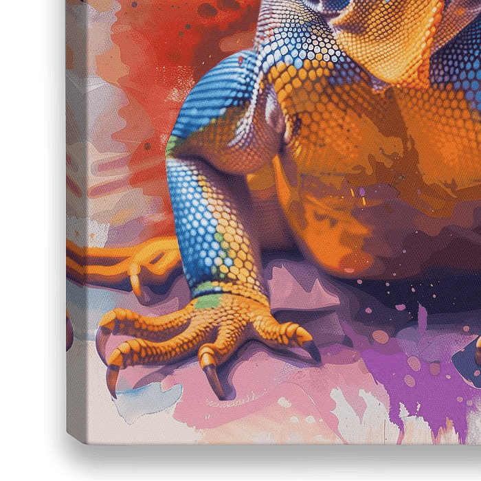 Bestelle dieses abstrakte Wandbild Bunter Leguan von Studio Ypie als Reproduktion auf Leinwand, Alu-Dibond, als Poster, Fototapete oder Acrylglasbild.