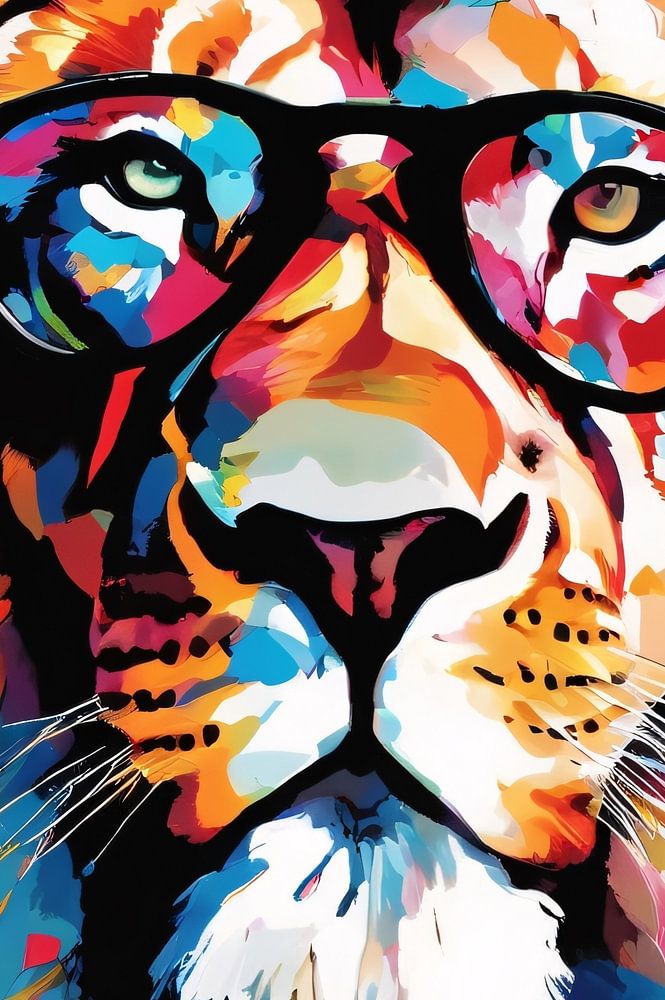 Dieses auffällige Kunstwerk zieht mit seiner schönen Palette an leuchtenden Farben sofort die Aufmerksamkeit auf sich. Das Bild zeigt einen imposanten Löwen, der im modernen Pop-Art-Stil mit leuchtenden Rot-, Gelb-, Blau- und Orangetönen gestaltet ist. Was das Design besonders einzigartig macht, ist die Hinzufügung einer stilvollen Brille, die dem Löwen ein verspieltes und doch kraftvolles Aussehen verleiht. Dieses Kunstwerk ist perfekt für alle, die kühne, dynamische Designs lieben und einen Hauch von zeitgenössischer Kunst in ihr Interieur bringen wollen. Es passt wunderbar in Räume wie ein Büro oder ein Wohnzimmer und verleiht jedem Raum eine farbenfrohe und energiegeladene Atmosphäre.