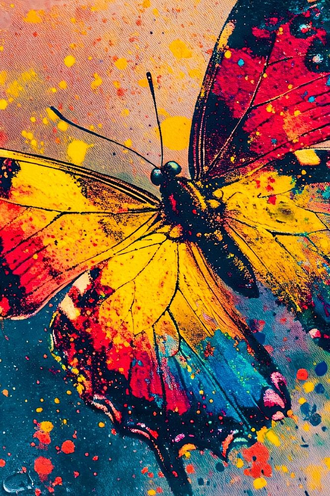 Dieser farbenfrohe Schmetterling auf einem abstrakten Hintergrund bringt Energie und Lebendigkeit in jeden Raum. Die kräftigen Farben und die dynamische Komposition ziehen sofort die Aufmerksamkeit auf sich und schaffen eine prickelnde Atmosphäre. Perfekt für alle, die moderne Kunst mit einem Hauch von Natur lieben. Dieses Kunstwerk ist ideal, um eine triste Wand zum Leben zu erwecken und einen einzigartigen Akzent in Ihrem Interieur zu setzen. Die Kombination aus weichen Pinselstrichen und scharfen Details verleiht dem Design einen fesselnden Look, der niemals langweilig ist.