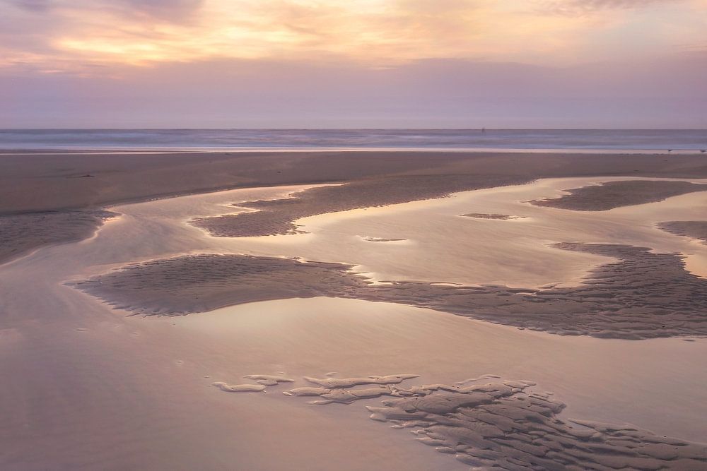 Ich genieße immer die Reflexion der Sonne im Wasser, besonders bei diesen schön geformten Becken am Strand.
