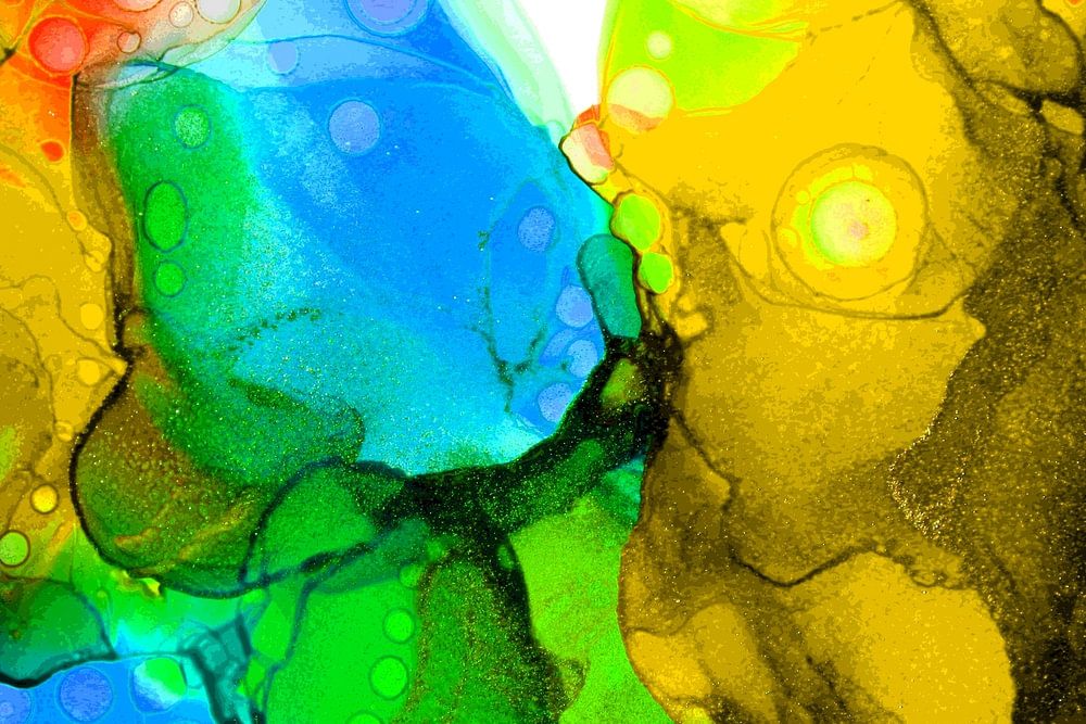 Dies ist ein Foto meiner eigenen Kunst, die ich mit Alkoholtinte auf Spezialpapier gemacht habe. Für diese Technik habe ich einen Haartrockner verwendet, um Luft über die Alkoholtinte zu blasen. Auf diese Weise können Sie die Alkoholtinte in eine bestimmte Richtung lenken.