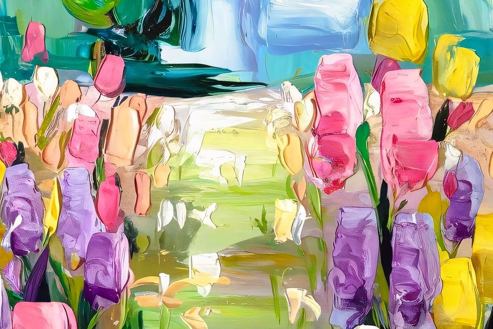 Dieses schöne Gemälde zeigt ein lebhaftes Blumenfeld voller bunter Blüten in Rosa, Lila, Gelb und Weiß. Das Design strahlt Energie und Fröhlichkeit aus, ideal für Menschen, die ihren Raum mit einem modernen, abstrakten Touch aufhellen wollen. Die lockeren Pinselstriche und die satte Farbpalette verleihen dem Gemälde einen einzigartigen, ausdrucksstarken Look, der dem Raum eine frische und lebendige Atmosphäre verleiht. Dieses Kunstwerk passt gut in ein modernes Wohnzimmer, ein Büro oder einen anderen Raum, in dem eine farbenfrohe und natürliche Atmosphäre gewünscht ist. Perfekt, um einen Raum zu erhellen und ihm ein künstlerisches Flair zu verleihen.