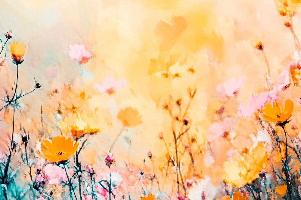 Dieses wunderschöne Design zeigt ein Feld voller bunter Blumen, das in das warme Licht eines Sonnenaufgangs gehüllt ist. Die verspielten und leuchtenden Farben vermitteln ein Gefühl von Freude und Gelassenheit, ideal für jeden Raum, der einen Hauch von Natur und Kreativität gebrauchen kann. Perfekt für moderne Innenräume oder um eine sanfte romantische Atmosphäre zu schaffen. Lassen Sie sich von der frischen Energie dieses abstrakten Kunstwerks inspirieren, das die Schönheit der Natur zelebriert.