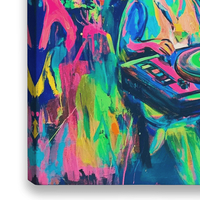 Bestelle dieses abstrakte Wandbild Buntes DJ-Hase im Nachtleben von Poster Art Shop als Reproduktion auf Leinwand, Alu-Dibond, als Poster, Fototapete oder Acrylglasbild.