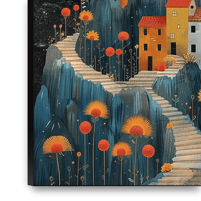 Bestelle dieses Blumen-Wandbild Buntes Dorf von haroulita als Reproduktion auf Leinwand, Alu-Dibond, als Poster, Fototapete oder Acrylglasbild.