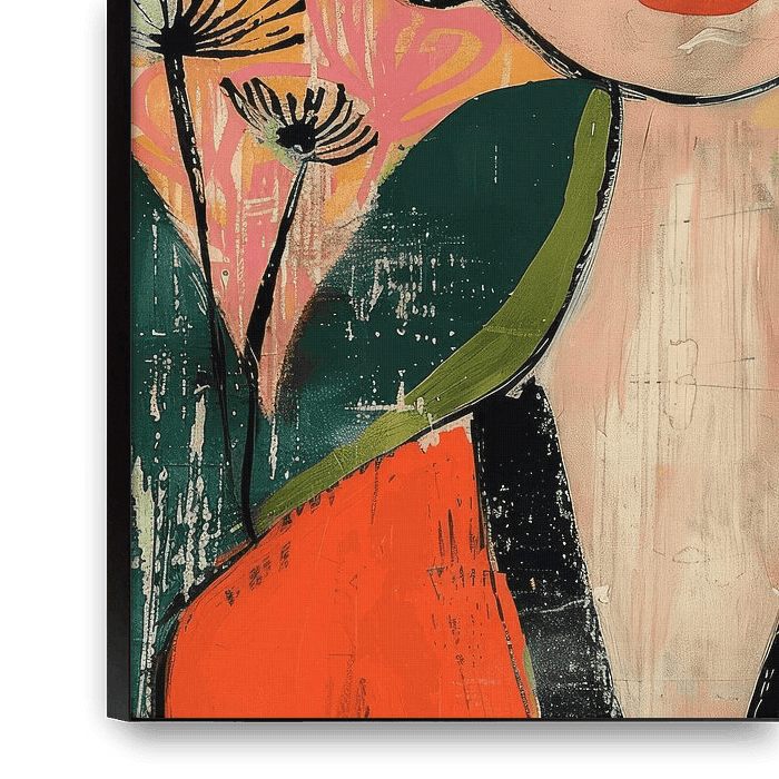 Buntes Portrait, moderne Illustration einer jungen Frau und fröhliche warme Farbtöne. Das ist ein besonderer Blickfang für Ihr Interieur! Wählen Sie die Größe und das Material selbst und machen Sie es zu einem echten Hingucker.