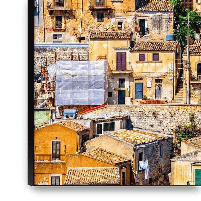Bestelle das Foto Buntes Stadtbild von Modica in Sizilien, Italien. von Ron van der Stappen als Reproduktion auf Leinwand, Alu-Dibond, als Poster, Fototapete oder Acrylglasbild.