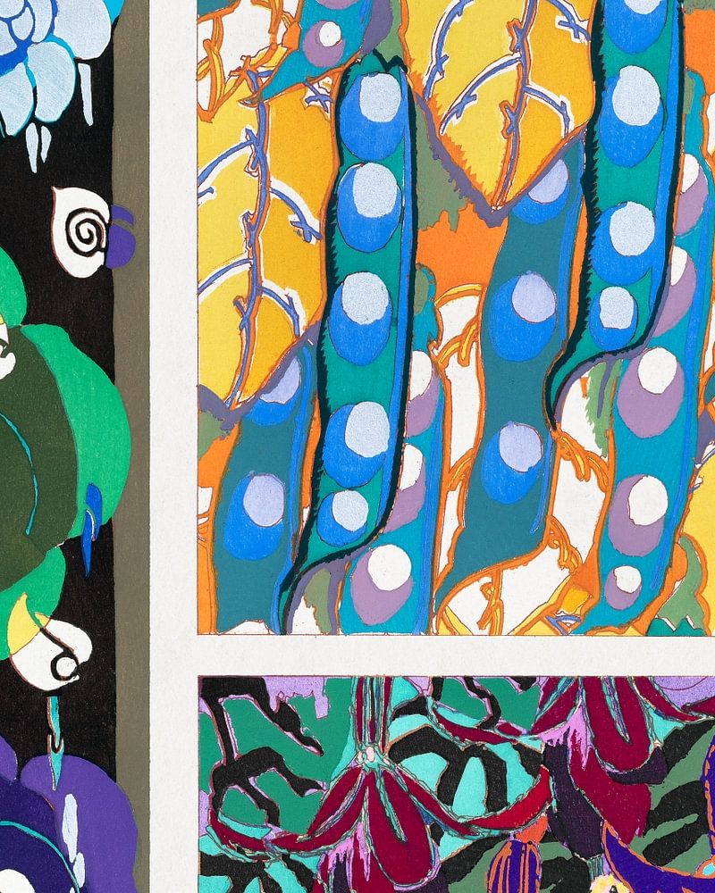 Buntes Vintage-Muster, Variationen 5 aus unserem eigenen Variations Quatre-Vingt-Six Motifs Décoratifs En Vingt Planches (1928) von Édouard Bénédictus