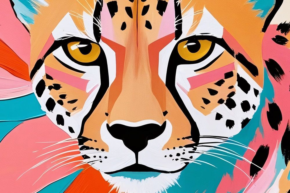 Dieses Design kombiniert die Schönheit eines Geparden mit einem lebendigen und modernen Pop-Art-Stil. Die Verwendung von leuchtenden Farben wie Orange, Pink, Blau und Gelb sorgt für einen dynamischen und auffälligen Effekt, der jeden Raum auflockert. Die Details des Geparden sind klar und grafisch, während der Hintergrund ein verspieltes, farbenfrohes Muster aufweist, das ihm ein energiegeladenes und kreatives Aussehen verleiht. Dieses Kunstwerk ist ein Blickfang, der nicht nur Tierliebhaber anspricht, sondern auch Menschen, die mutige und moderne Kunst mögen. Ein ideales Werk für ein Büro oder ein Wohnzimmer, wo ein Hauch von Farbe und Charakter erwünscht ist.