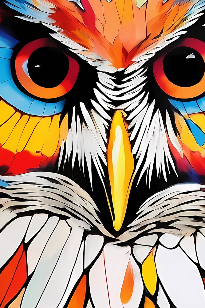 Dieses einzigartige Design einer bunten Eule zieht mit seinen leuchtenden Farben und dem detaillierten Federmuster sofort die Aufmerksamkeit auf sich. Der spielerische Einsatz von Farben wie leuchtenden Gelb-, Blau-, Rot- und Orangetönen verleiht dem Bild einen dynamischen Look, der perfekt zu einem modernen und eklektischen Einrichtungsstil passt. Die kontrastreichen Farben und die großen, ausdrucksstarken Augen der Eule machen das Bild faszinierend und fesselnd. Dieses Design wäre eine wunderbare Ergänzung für ein Schlafzimmer oder ein Büro, wo es ein echter Blickfang sein kann. Das Design strahlt Energie aus und schafft eine fröhliche Atmosphäre, ideal für alle, die auffällige und einzigartige Kunst lieben.