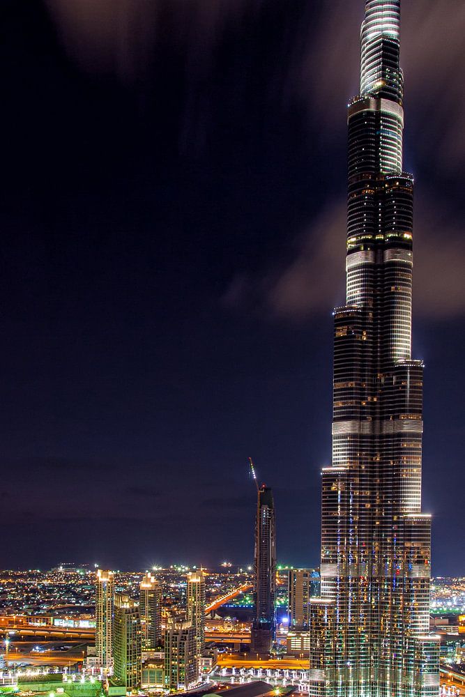 Das höchste Gebäude der Welt, dass Burj Khalifa in Dubai bei Nacht.
