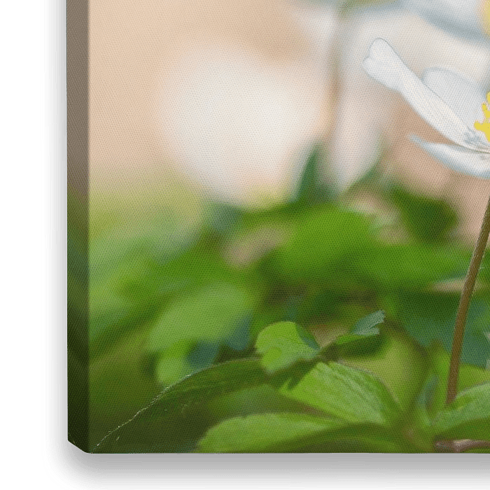 Weiße Buschwindröschen im Wald mit Weichzeichner.