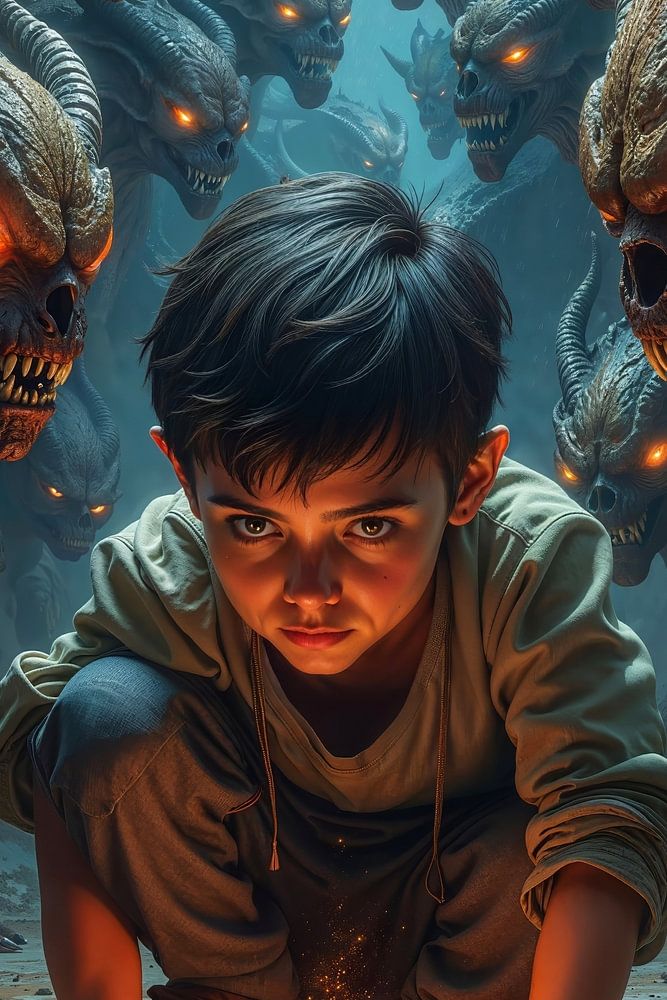 Der Junge ist mehr als nur ein Kind – er ist das Sinnbild des Widerstands. Er verkörpert Mut und Unschuld im Angesicht des Bösen, die Kraft des Lichts gegen die Übermacht der Finsternis. Seine Haltung wird zum Symbol des ewigen Kampfes zwischen Reinheit und Verdammnis.