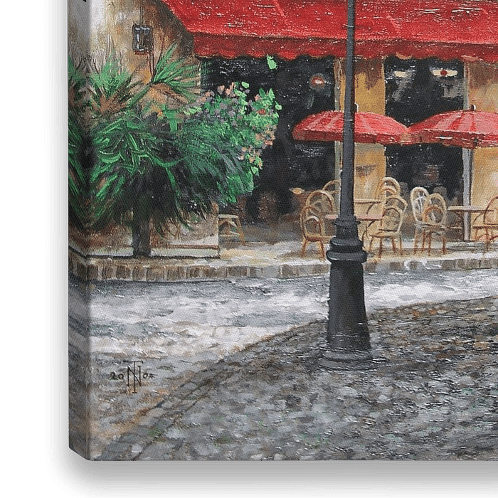 Bestelle diese Malerei Cafe Beauclaire von Trevor Neal als Reproduktion auf Leinwand, Alu-Dibond, als Poster, Fototapete oder Acrylglasbild.