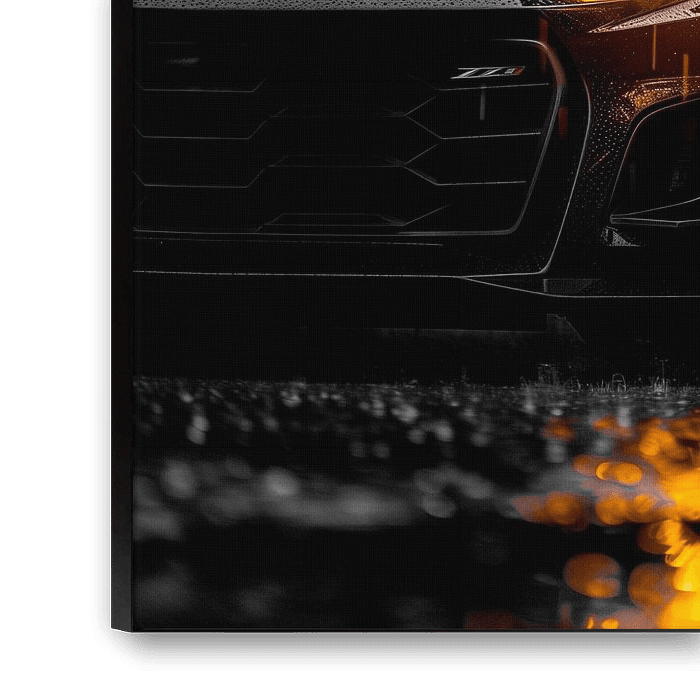 Chevrolet Camaro ZL1: Bedrohlich und dunkel schneidet der orangefarbene Scheinwerfer dieses ZL1's durch eine regnerische, einfarbige Nacht. Der niedrige Winkel unterstreicht seine rohe, ungezähmte Kraft.