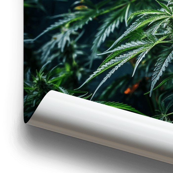Marihuanablätter, Cannabis, dunkler Hintergrund, Werbung, Droge