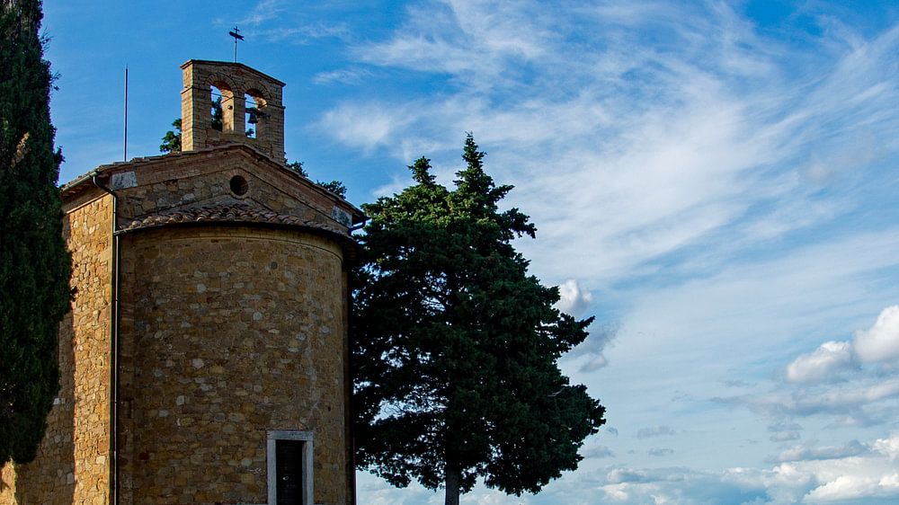Das Val D'Orcia ist ein wunderschönes Tal in der Toskana, Italien, und befindet sich in der Nähe von Siena. Einer der Höhepunkte ist die Cappella della Madonna di Vitaleta. Diese kleine Kapelle steht zwischen den Zypressen auf einem toskanischen Hügel. Diese Kapelle ist einer der berühmtesten Orte in der Toskana und in Italien.
