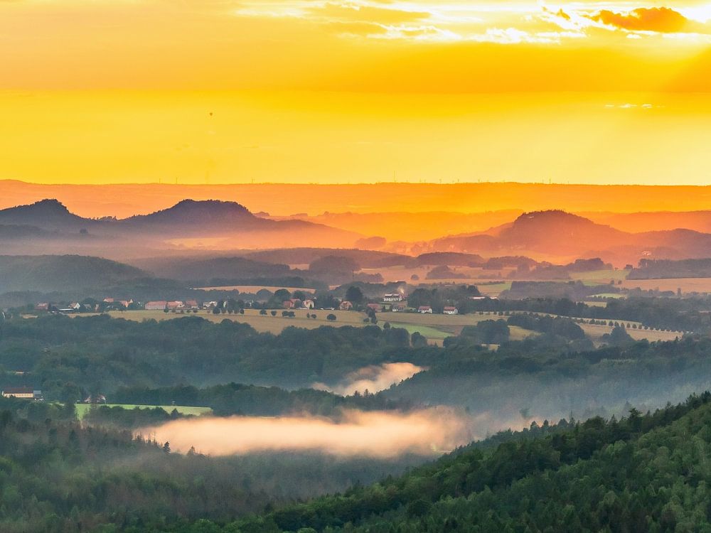 Viele Menschen haben sie gar nicht auf dem Zettel: die Bärensteine und den Rauenstein. Dabei erheben sie sich ganz nahe der Touristenhochburg in der Sächsischen Schweiz, südwestlich von Bad Schandau bzw. Südöstlich von Wehlen. Mit der Fähre übergesetzt und losgelaufen, ist es gar nicht weit auf die Berge und zu lohnenswerten Aussichten. Unter anderem erhascht man vom Rauenstein einen Blick auf die Bastei von einer mal etwas anderen Perspektive. Die Aufnahme hier ist zwar weit entfernt von den beiden Bergen in der Struppener Elbschleife entstanden, doch das Licht ließ am Abend der Aufnahme ihre Konturen so schön und prägnant am Horizont erleuchten, dass ich mich ihnen widmen musste.