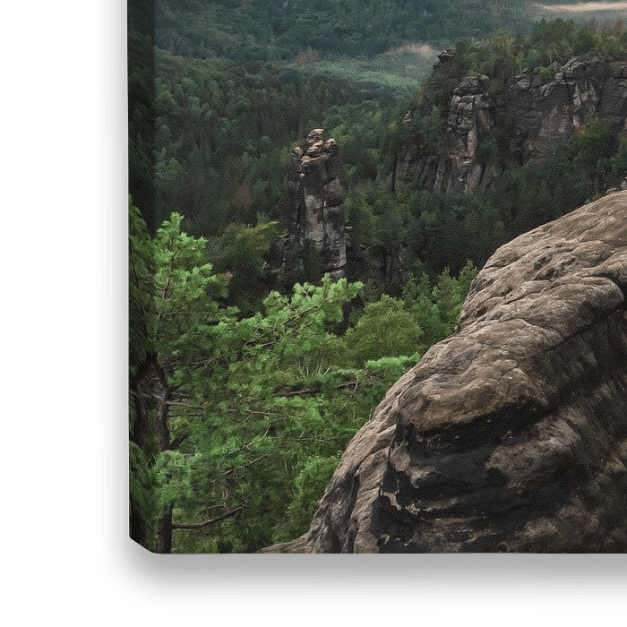 Bestelle das Foto Carolafelsen, Sächsische Schweiz - Birke und Schrammsteine von Pixelwerk als Reproduktion auf Leinwand, Alu-Dibond, als Poster, Fototapete oder Acrylglasbild.