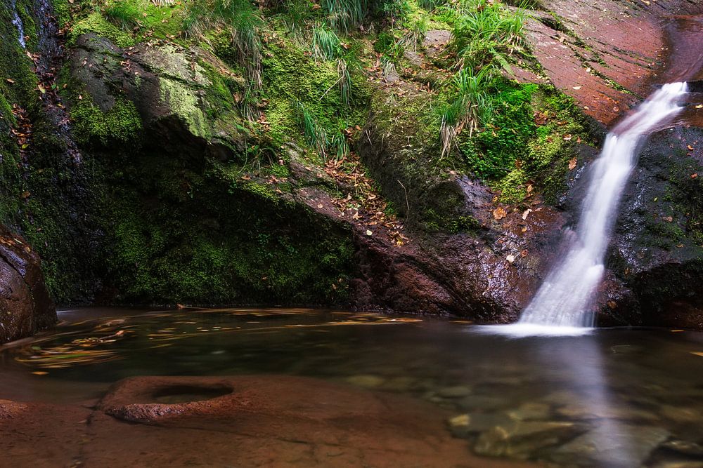 De waterval Cascade la Chaudière in de Ninglinspo in de Belgische Ardennen in de herfst met laag water