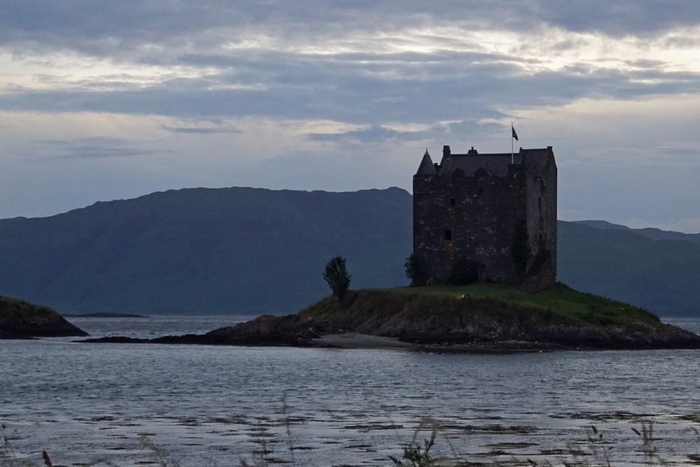 Castle Stalker ist ein Turmhaus etwa 2,5 Kilometer nordöstlich von Port Appin