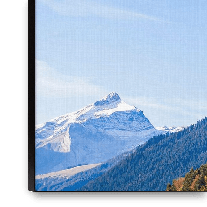 Bestelle dieses Landschafts-Wandbild Chalet bei Gstaad in der Schweiz von Werner Dieterich als Reproduktion auf Leinwand, Alu-Dibond, als Poster, Fototapete oder Acrylglasbild.