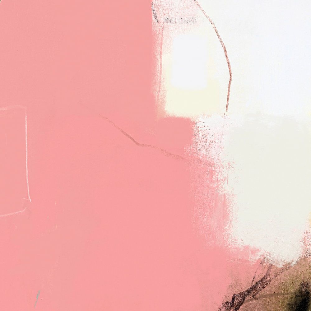 Eine feminine und lebendige Komposition. Der weitläufige rosa Hintergrund kollidiert spielerisch mit olivgrünen Tönen, während gelbe Spritzer das Sonnenlicht im Garten imitieren. Die spontane Linienführung erinnert an die lässige Eleganz eines französischen Gartens und versprüht raffinierten urbanen Charme.