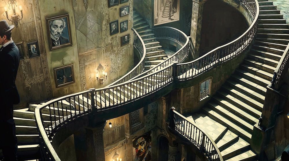 Ein Museum, das nicht den Gesetzen der Schwerkraft unterliegt. Treppen, die sich endlos schlängeln, Gänge, die im Nichts zu verschwinden scheinen, und eine surreale Architektur, in der Charlie Chaplins Präsenz spürbar ist. Chaplin's Escherian Exposition ist eine Hommage an zwei Ikonen: den Meister der optischen Täuschung, M.C. Escher, und den König des Stummfilms, Charlie Chaplin.