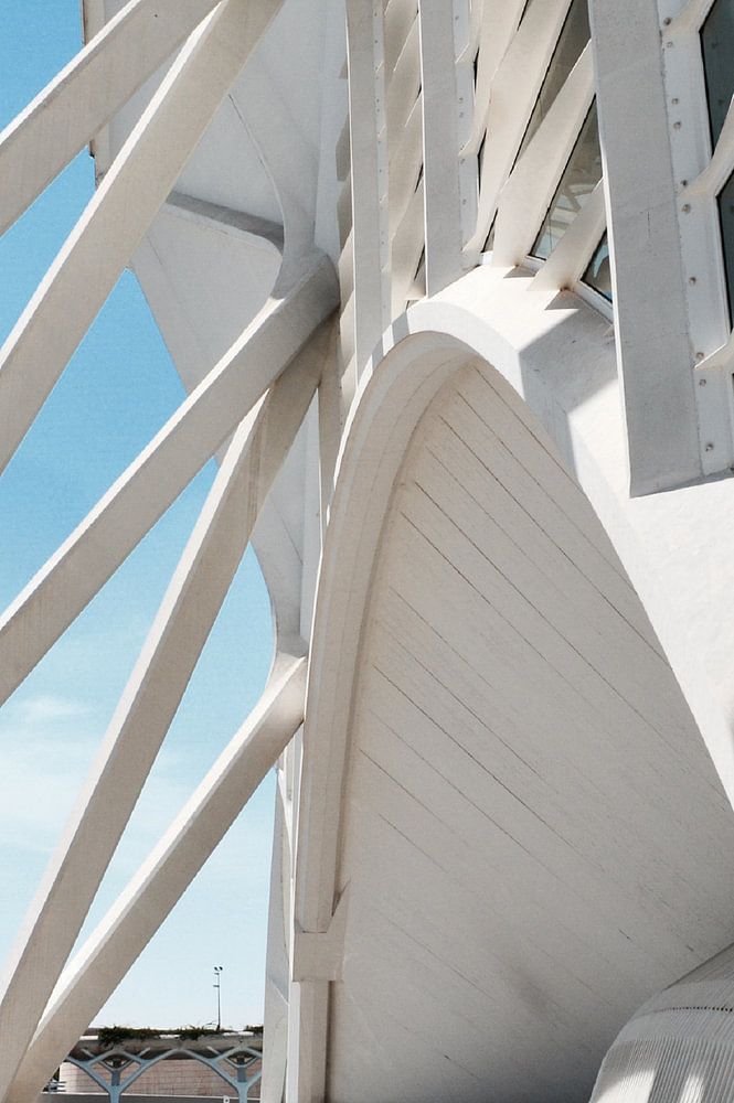 Die Seite des Ciutat de les Arts in der Stadt der Künste und der Wissenschaften. Entworfen von dem spanischen Architekten Santiago Calatrava im Jahr 1998.