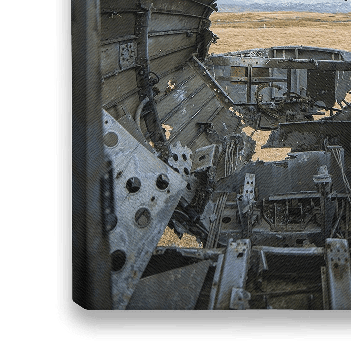 Aufnahme von innen nach außen des Cockpits des DC-3-Flugzeugwracks in Island