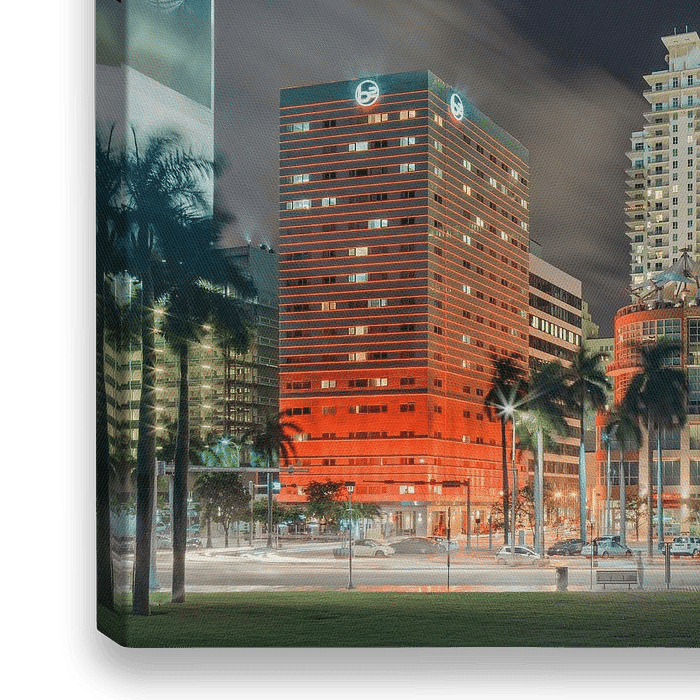Bestelle das Foto Colourful DownTown Miami von Mark den Hartog als Reproduktion auf Leinwand, Alu-Dibond, als Poster, Fototapete oder Acrylglasbild.