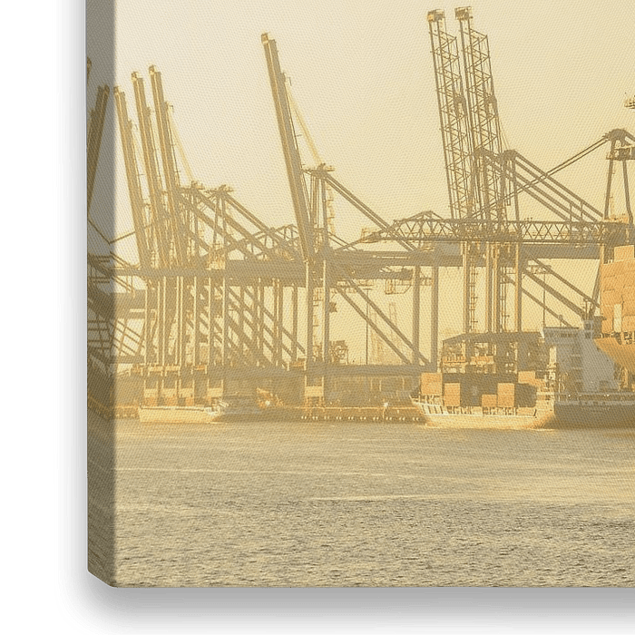 Bestelle dieses Rotterdam-Wandbild Containerschiff an einem terminal im Rotterdam Hafen von Sjoerd van der Wal Fotografie als Reproduktion auf Leinwand, Alu-Dibond, als Poster, Fototapete oder Acrylglasbild.