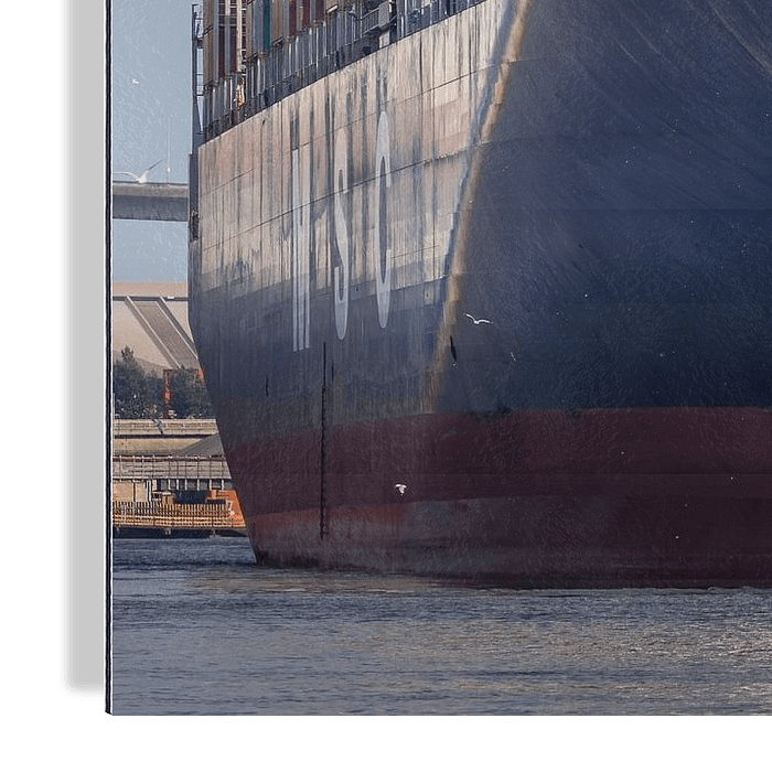 Bestelle das Foto Containerschiffe - Giganten der Logistik von Sabine Wagner als Reproduktion auf Leinwand, Alu-Dibond, als Poster, Fototapete oder Acrylglasbild.