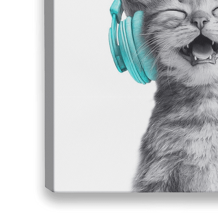 Diese Katze hat den Beat einfach im Blut! Mit ihrem breiten Grinsen und den coolen türkisfarbenen Kopfhörern versprüht sie pure Lebensfreude, perfekt für alle, die gute Laune lieben oder manchmal daran erinnert werden wollen. Das moderne, minimalistische Design verbindet feine schwarz-weiße Linien mit einem klaren Farbakzent in…