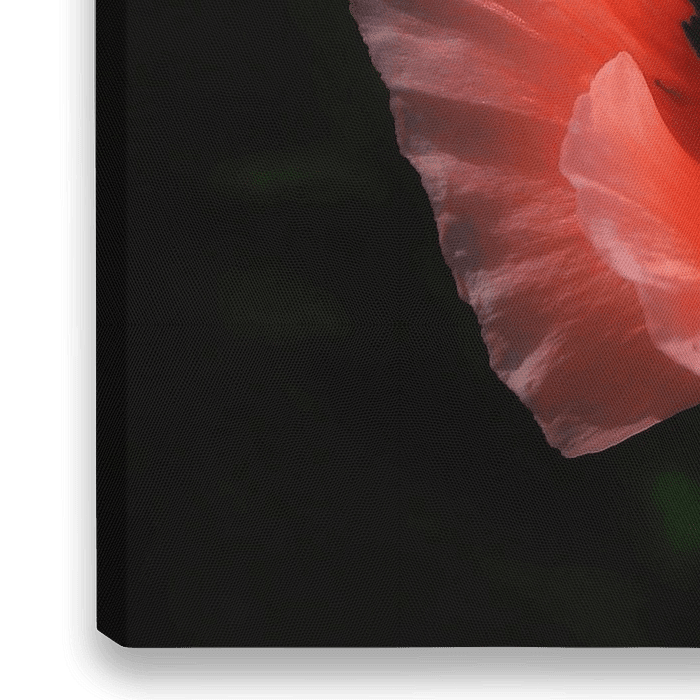 Gesehen in Normandie, Frankreich. Die hellrosa Farbe bildet einen schönen Kontrast zum dunklen, fast schwarzen Hintergrund. Diese Mohnblume hat in Frankreich den schönen Namen "Coquelicot",